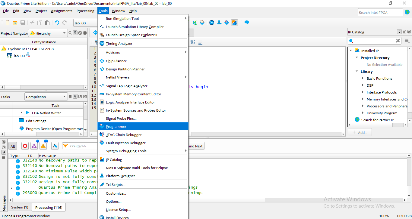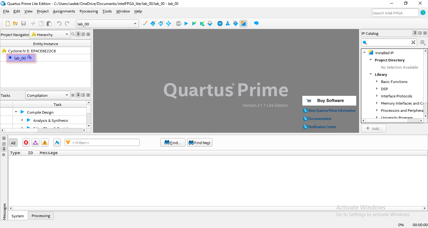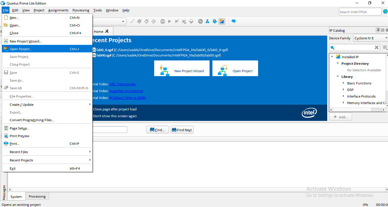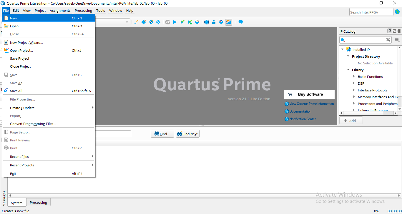 - Run the Quartus Prime Lite Edition program.