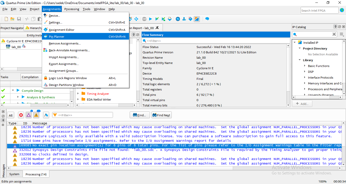 Step4: Pin Assignment & Compiling: