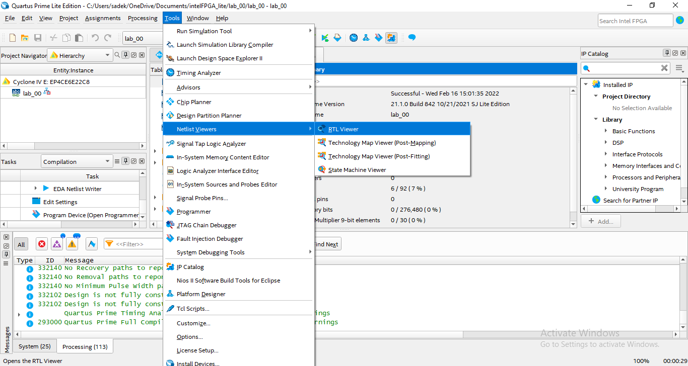 Toolsmenu, openNetlist Viewersand selectRTL viewer.