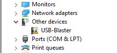 - After successfully installation and installing the drivers, connect the USB Blaster and follow the steps in this wiki to install the compatible drivers: